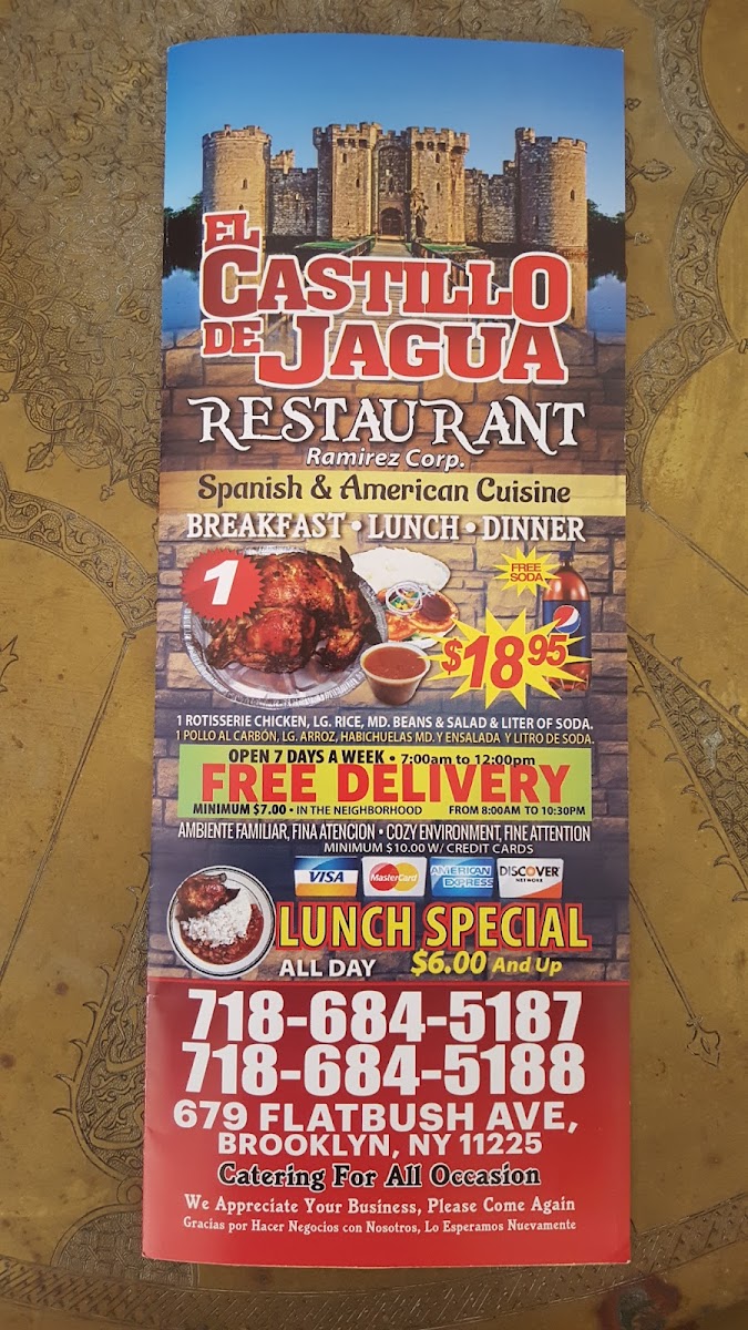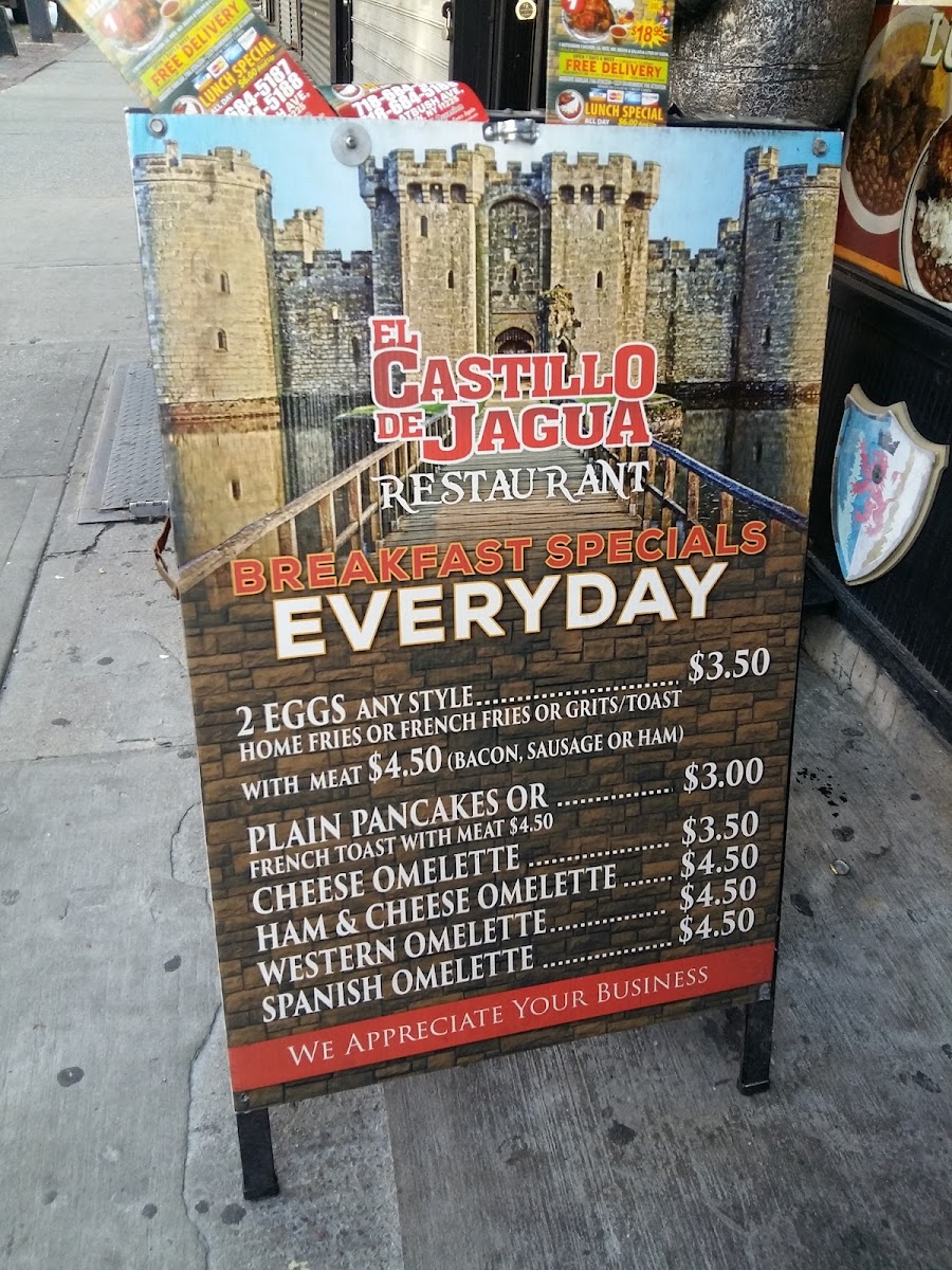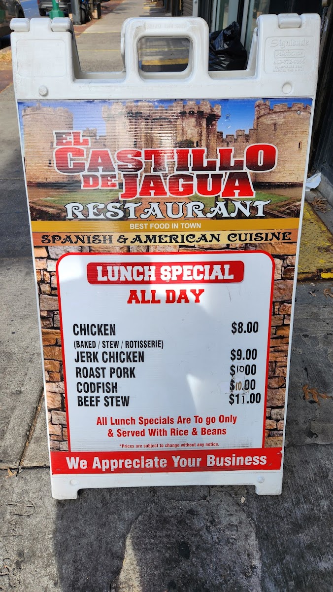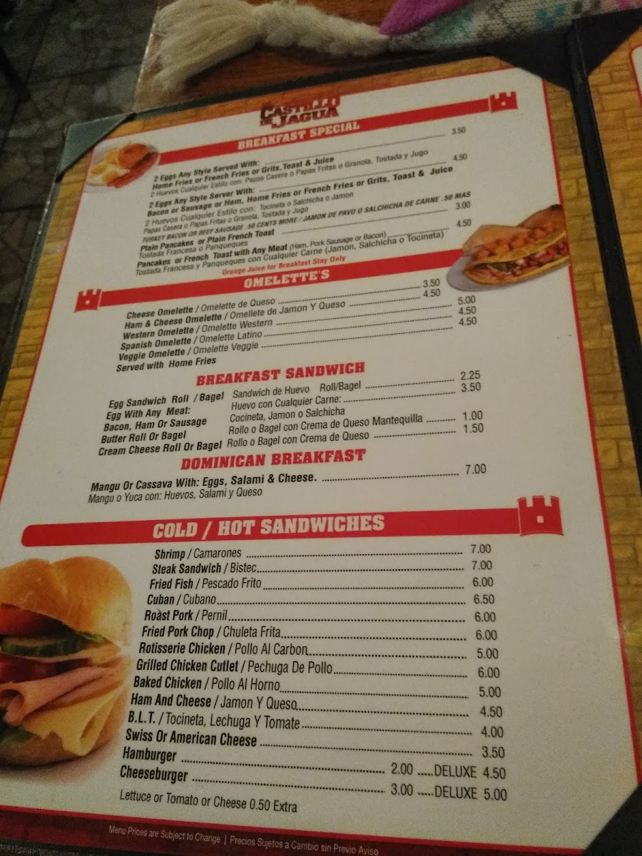 Welcome to El Castillo de Jagua, a vibrant Dominican restaurant nestled in the heart of Brooklyn. At this charming eatery, you are invited to savor authentic Dominican flavors, showcased through a diverse menu that ranges from hearty breakfast specials, like the mouthwatering cheese omelette and the beloved mangú, to an array of flavorful sandwiches such as the Cuban Cubano and the succulent fried fish.